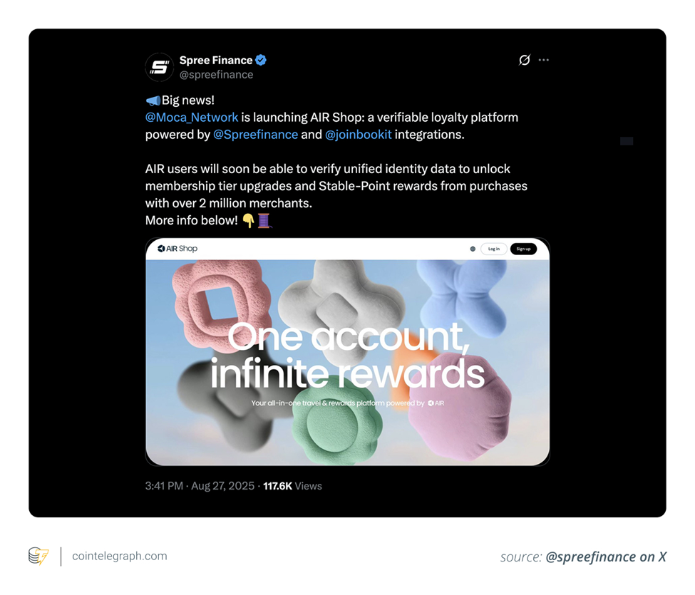 • Air Shop (ra mắt 9/2025): ứng dụng stablecoin vào thương mại và loyalty, giúp điểm thưởng (Stable-Points) có giá trị bền vững và sử dụng ở hơn 2 triệu merchant toàn cầu.