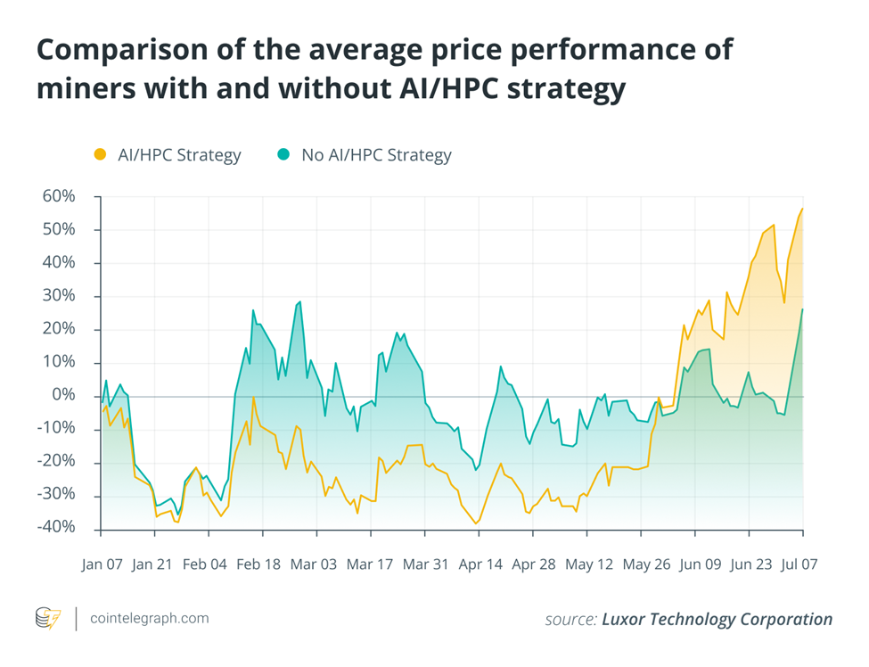 Các công ty áp dụng chiến lược HPC và AI đã chứng kiến định giá tăng cao hơn so với những công ty không tham gia. Đến cuối quý 2, giá cổ phiếu của thợ đào liên quan đến AI và HPC tăng 25% từ đầu năm, trong khi thợ đào truyền thống giảm 3%.